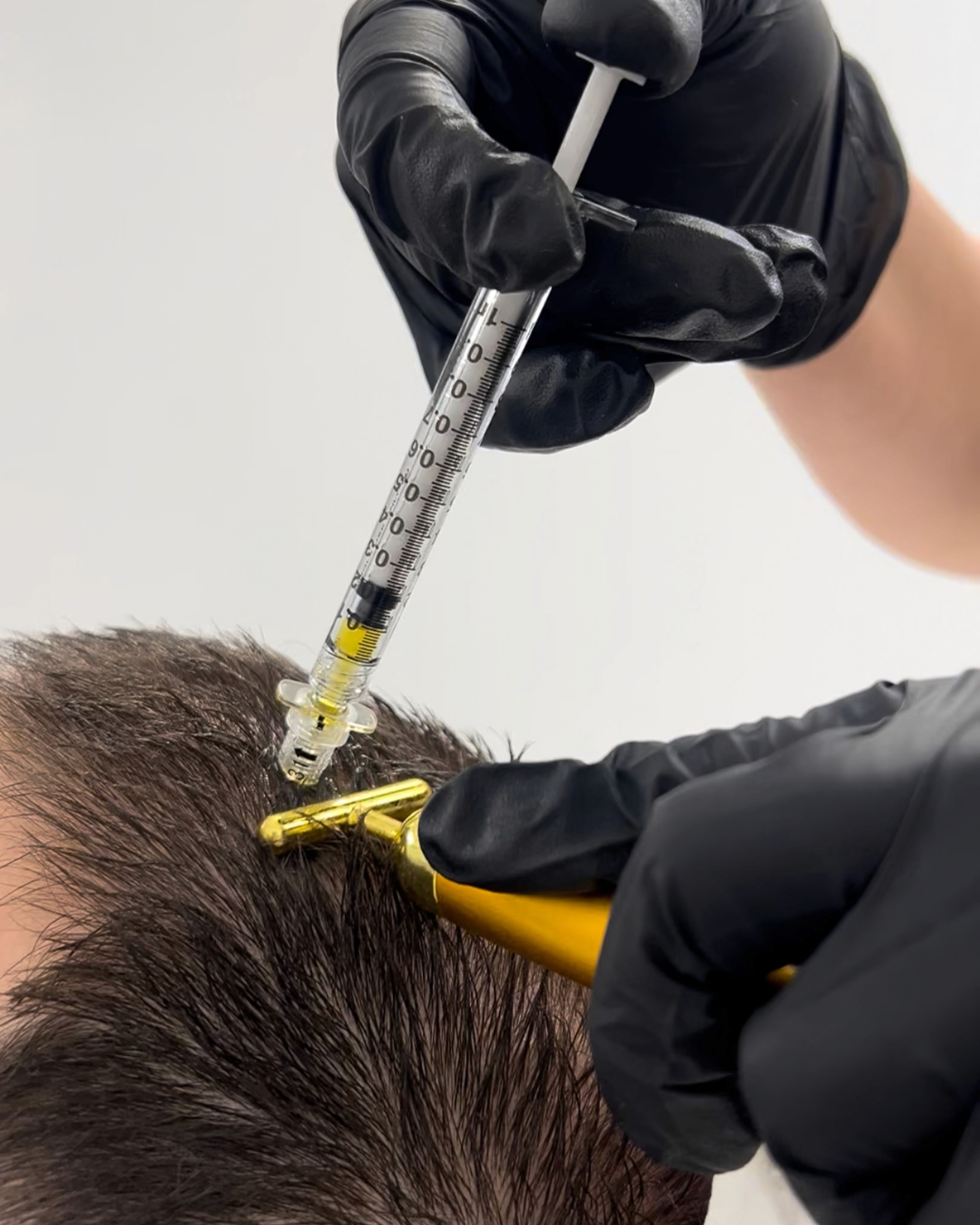Carefully placed injections are administered to targeted areas of the scalp.